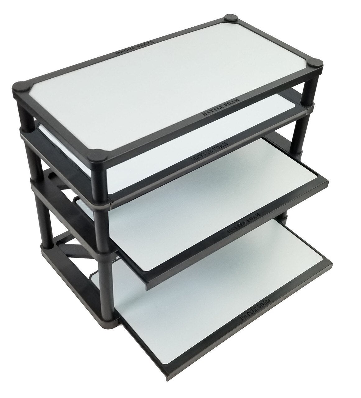 The Magna Rack Sliders trays have been designed for gamers who like to store and transport their miniatures that have been magnetized. Magnetized models allow you to store your miniatures upright protecting them from rubbing on other materials. Sliders allow for easy access to your models. And because they are completely removable you can go from tray to table and back again with ease.
