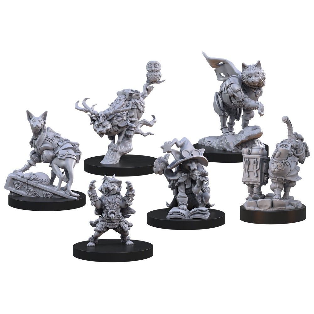 Inside this box you'll find six fully assembled, highly detailed miniatures ready to paint or play. These cats are compatible with all fantasy roleplaying games and can be used as player characters, companions, or familiars. The choice is yours!