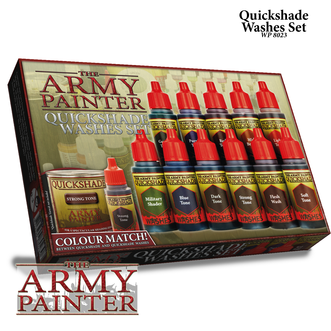 This set contains eleven Quickshade Washes. These Washes are probably the best in the hobby and will get you perfect shading every time plus the option of adding a colour tone to your miniatures. All Quickshade Washes (Bottles) are a 100% colour match to the corresponding Quickshade Varnish (Pots).